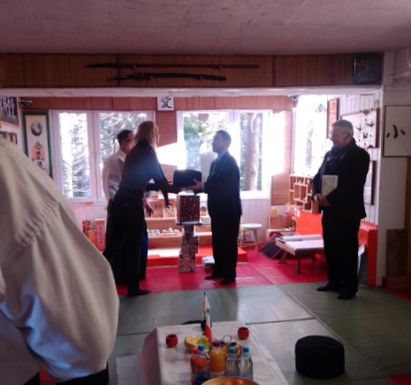 And the day came. Finally, the Sensei invited us to take part in the meeting with the Vice-Ambassador of Japan. Moreover, it was a private meeting, so the joy was tremendous. The peace of mind the Aikido Master and the Vice Ambassador had, made me smile and feel happiness. Just after the meeting, Sensei let me give the Vice-Ambassador a present: our beautiful organic black zafu meditation pillow, to accompany him during meditation and in his life, whether in the Embassy of Japan or home in Poland.